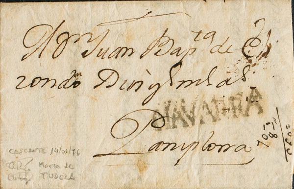 1776. CASCANTE to PAMPLONA. NAVARRA brand, from Tudela (PE5) 2004 edition. MAGNIFICENT AND RARE.