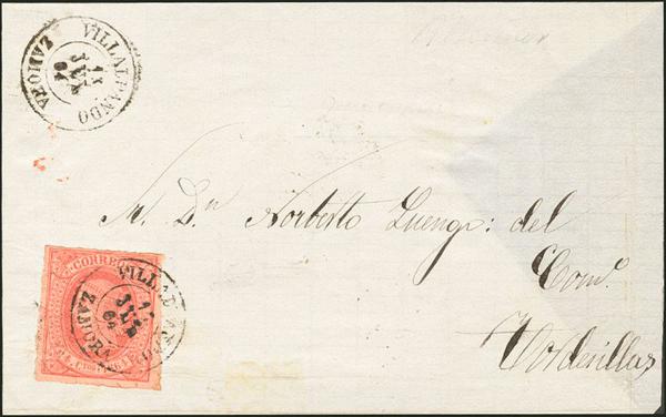 64. 1864. 4 cuartos pink. VILLALPANDO to TORDESILLAS. Postmark VILLALPANDO / ZAMORA. MAGNIFICENT.