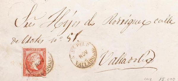 48. 1859. 4 cuartos red. NAVA DEL REY to VALLADOLID. Postmark NAVA DEL R. / VALLADOLID (Type I). BEAUTIFUL AND RARE.