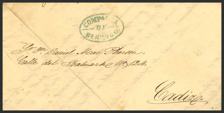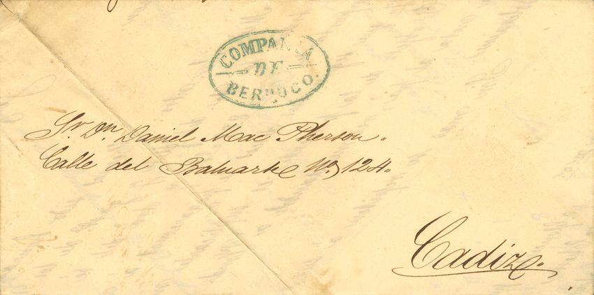 1852. SHERRY to CADIZ. COMPAÑIA / DE / BERDUGO brand, in green (PE8) 2004 edition. MAGNIFICENT AND RARE.