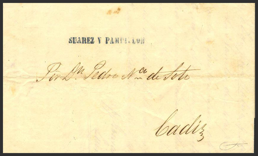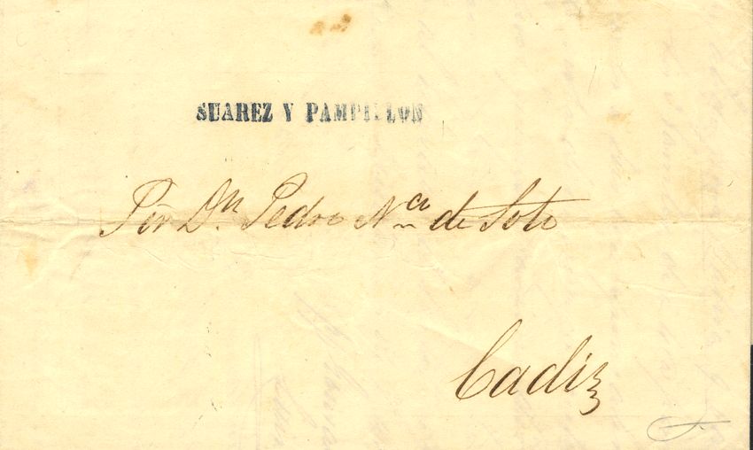 1855. SHERRY to CADIZ. SUAREZ Y PAMPILLON brand, in blue (PE41) 2004 edition. MAGNIFICENT AND VERY RARE.