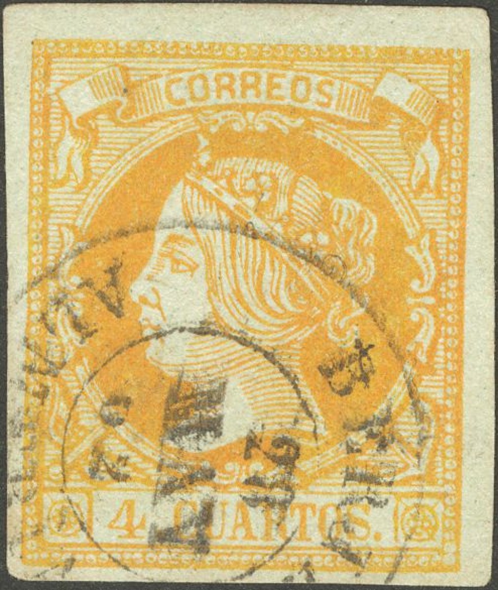 52. 1860. 4 orange cuartos . Postmark BERJA / ALMERIA.