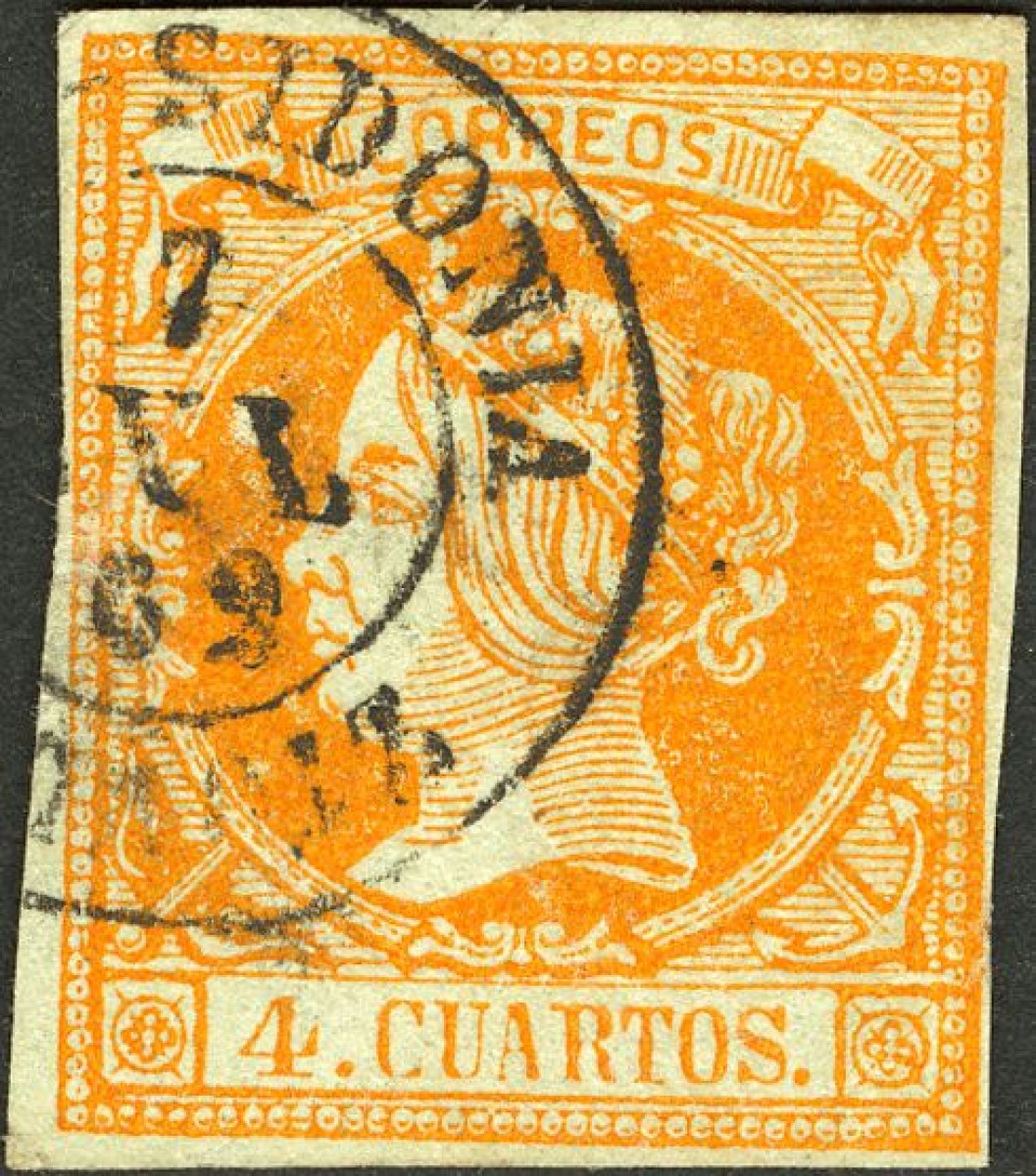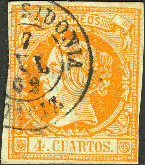 52. 1860. 4 cuartos yellow. Postmark MEDINA-SIDONIA / CADIZ.