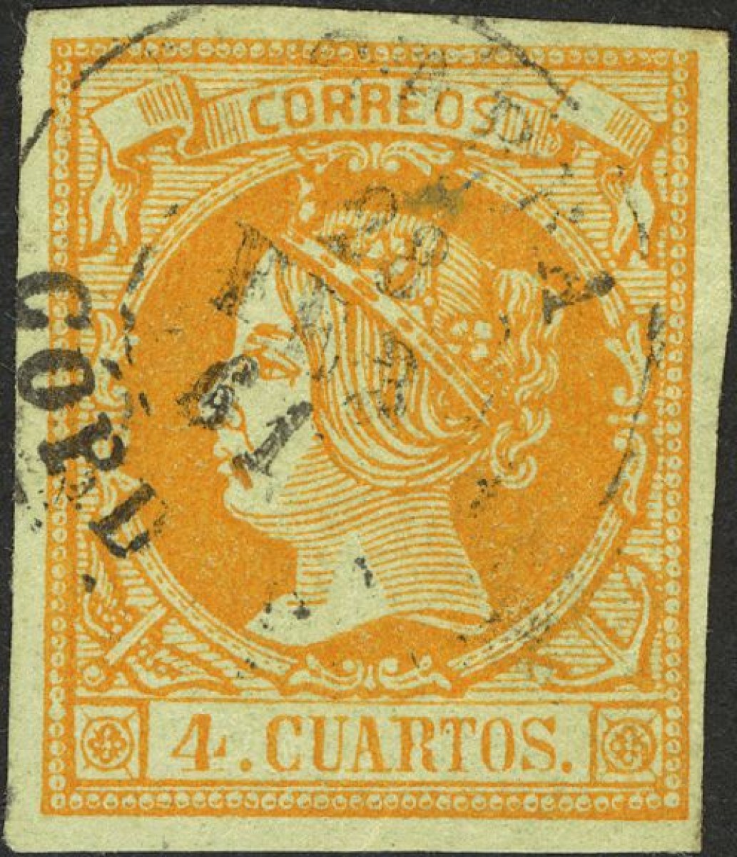 52. 1860. 4 cuartos yellow. Postmark GOAT / CORDOBA.