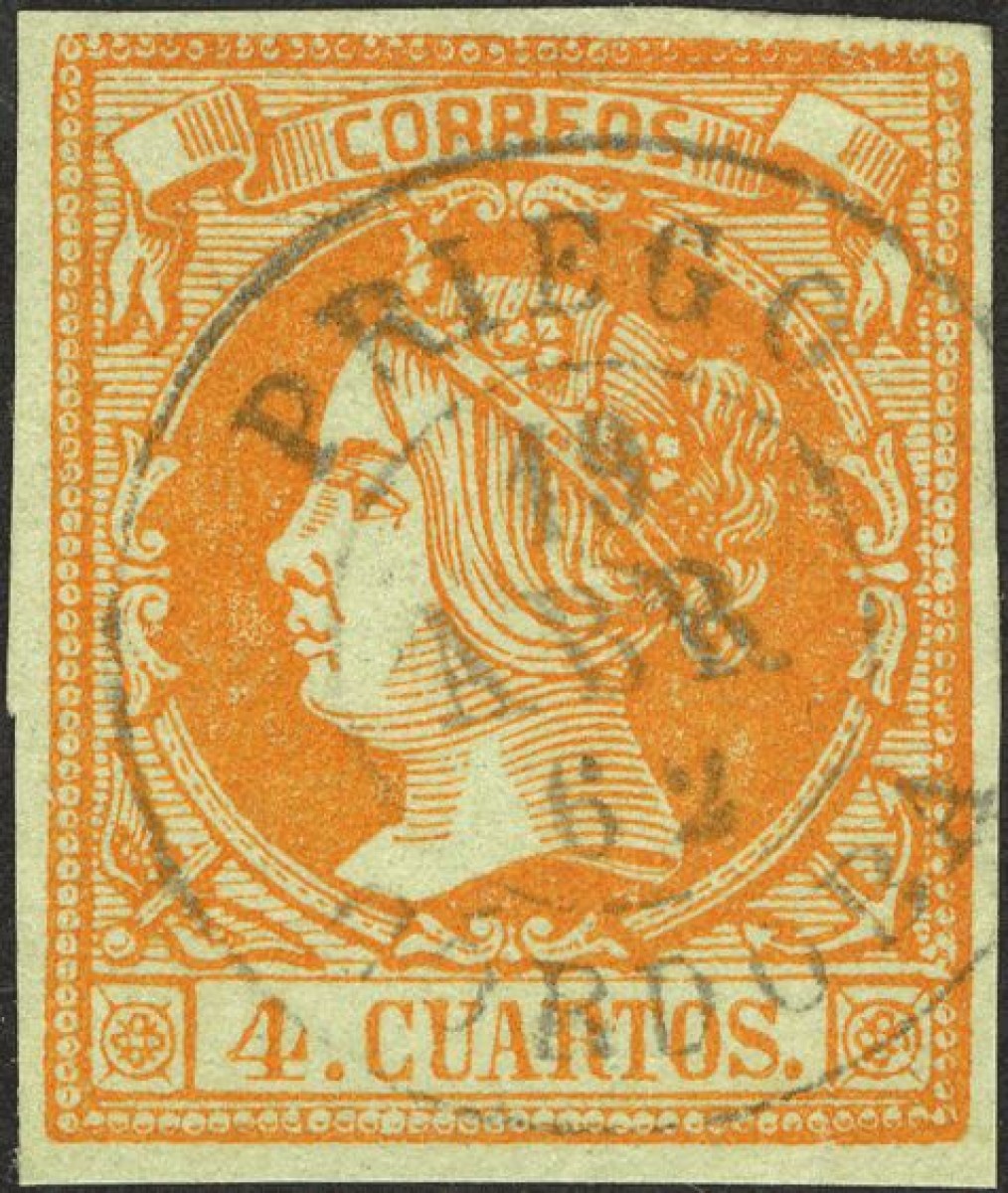 52. 1860. 4 cuartos yellow. Postmark PRIEGO / CORDOBA.