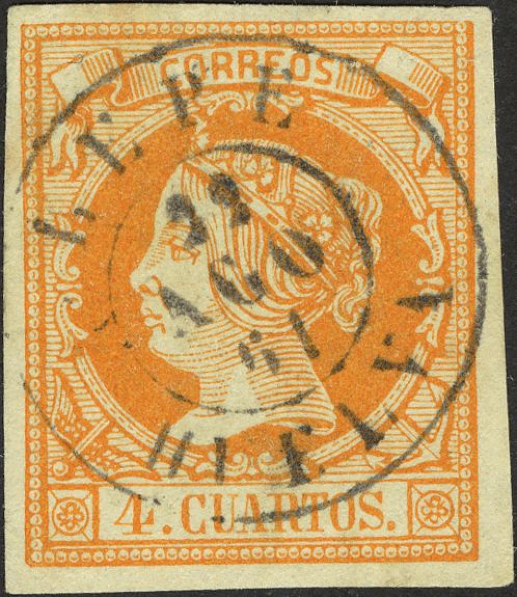 52. 1860. 4 cuartos yellow. Postmark LEPE / HUELVA. LUXURY.