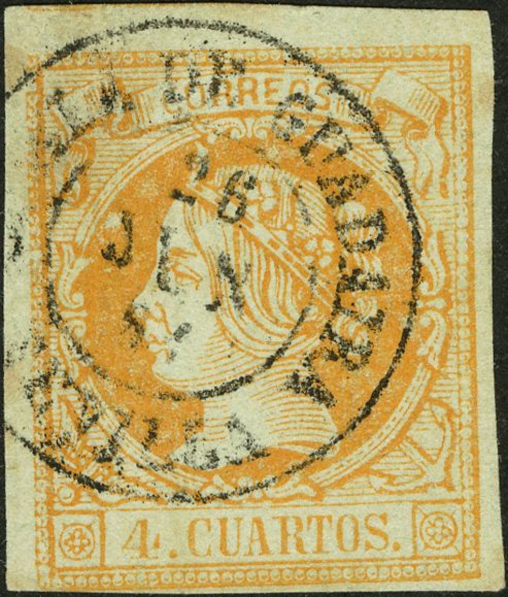 52. 1860. 4 cuartos yellow. Postmark ALCALA DE GUADAIRA / SEVILLE.