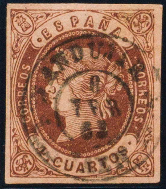 58. 1862. 4- cuartos chestnut. Postmark ANDUJAR / JAEN. MAGNIFICENT.