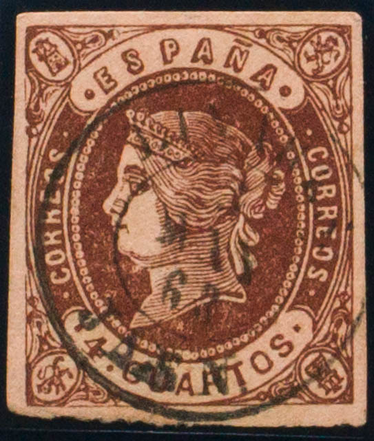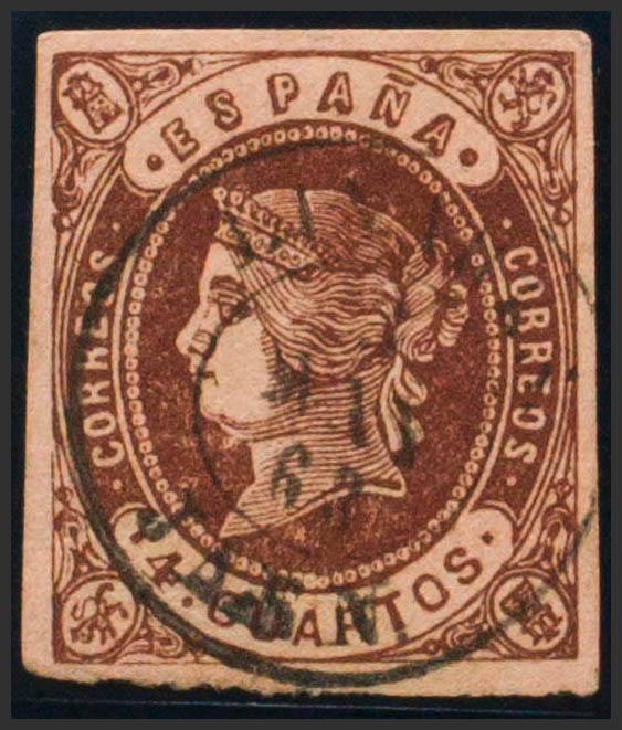 58. 1862. 4- cuartos chestnut. Postmark LINARES / JAEN. MAGNIFICENT.