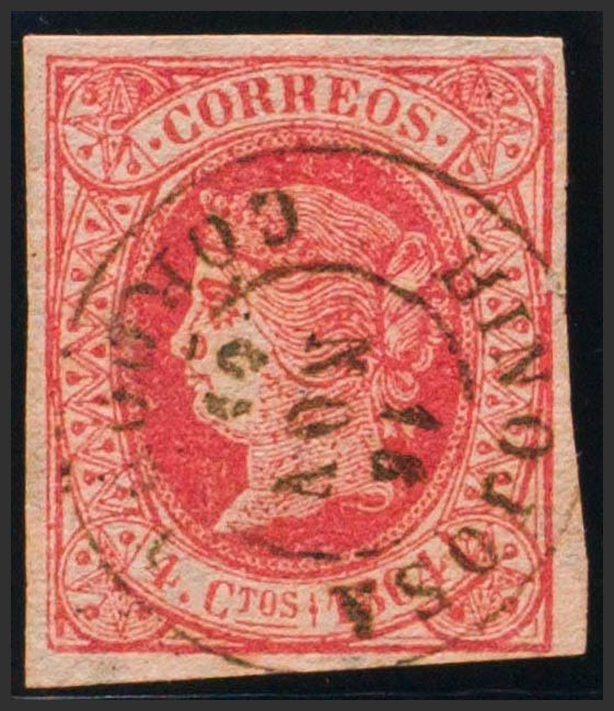 64. 1864. 4 red cuartos . Postmark HINOJOSA / CORDOBA. MAGNIFICENT AND RARE.