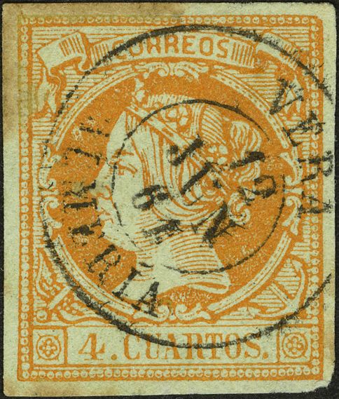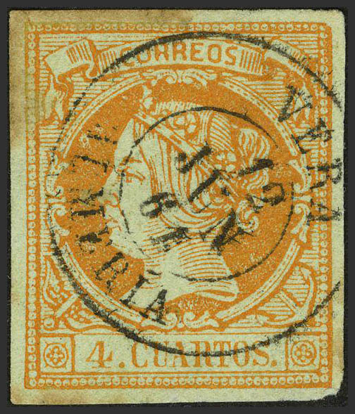 52. 1860. 4 cuartos yellow. Postmark VERA / ALMERIA. MAGNIFICENT.