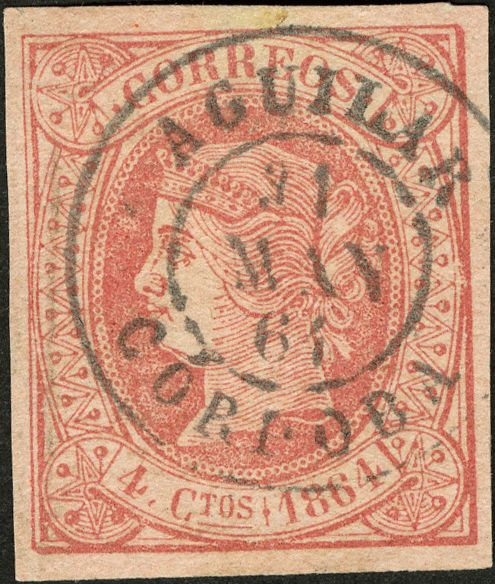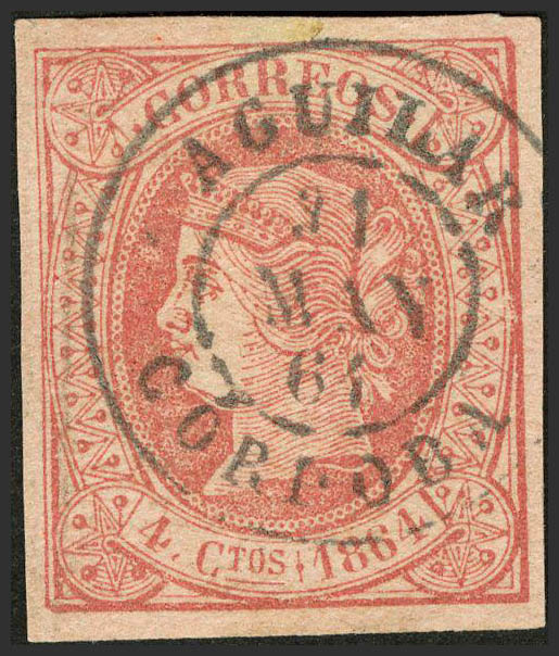 64. 1864. 4 red cuartos . Postmark AGUILAR / CORDOBA. LUXURY.
