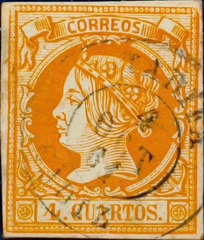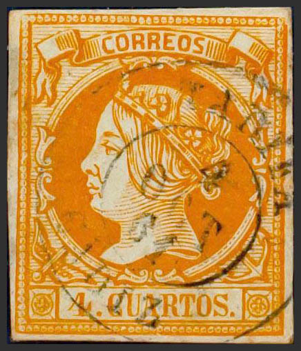 52. 1860. 4 orange cuartos . Postmark TARIFA / CADIZ. PRETTY.