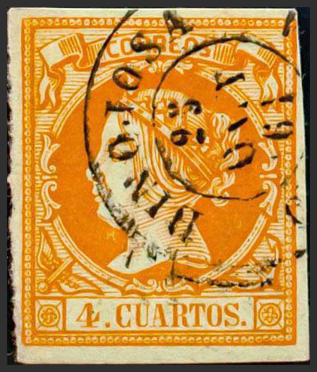 52. 1860. 4 orange cuartos . Postmark HINOJOSA / CORDOBA. MAGNIFICENT.