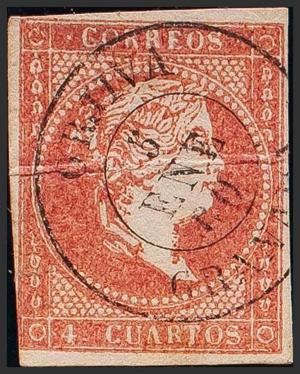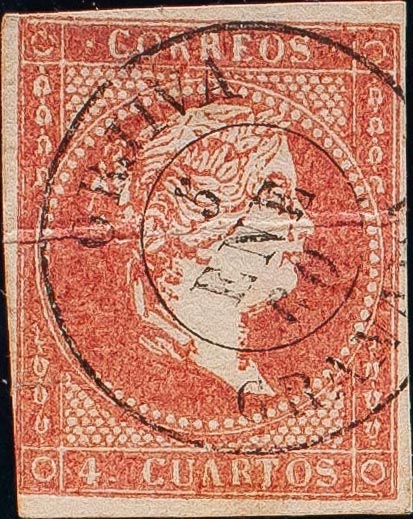 48. 1855. 4 cuartos red. ORJIVA / GRANADA postmark. MAGNIFICENT AND VERY RARE.