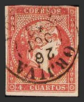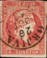 48. 1855. 4 cuartos red. ORJIVA / GRANADA postmark (Type I). MAGNIFICENT.