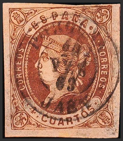 58. 1862. 4 cuartos chestnut. PORCUNA / JAEN postmark. MAGNIFICENT.
