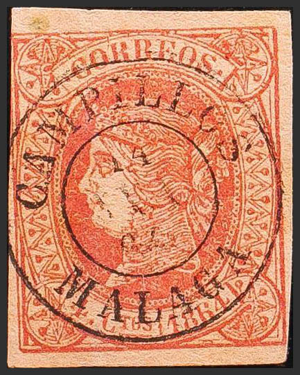 64. 1864. 4 pink cuartos . Postmark CAMPILLOS / MALAGA. MAGNIFICENT.