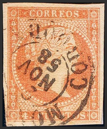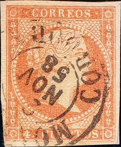 48. 1855. 4 cuartos red. Postmark MONTILLA / CORDOBA (Type I). MAGNIFICENT.