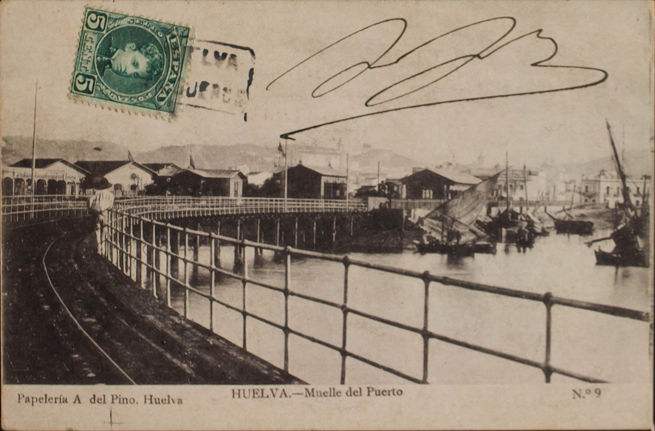 242. 1901. 5 cts green. TRIGUEROS (HUELVA) to LUXEMBOURG. Mail postmark HUELVA / TRIGUEROS. MAGNIFICENT AND RARE DESTINATION.