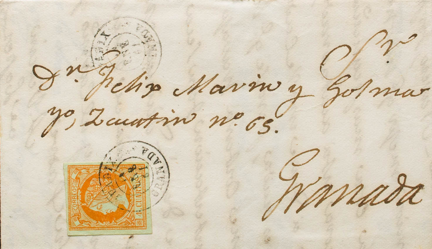 52. 1861. 4 orange cuartos . GUADIX to GRANADA. Postmark GUADIX / GRANADA. MAGNIFICENT.
