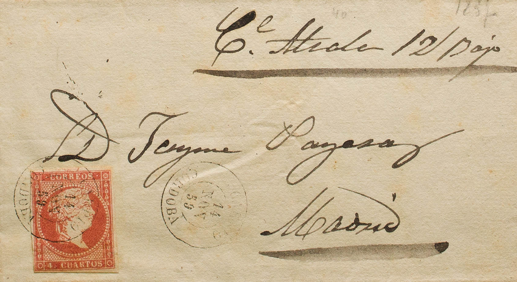 48. 1859. 4 red cuartos . CARPIO to MADRID. Postmark CARPIO / CORDOBA. MAGNIFICENT AND RARE.