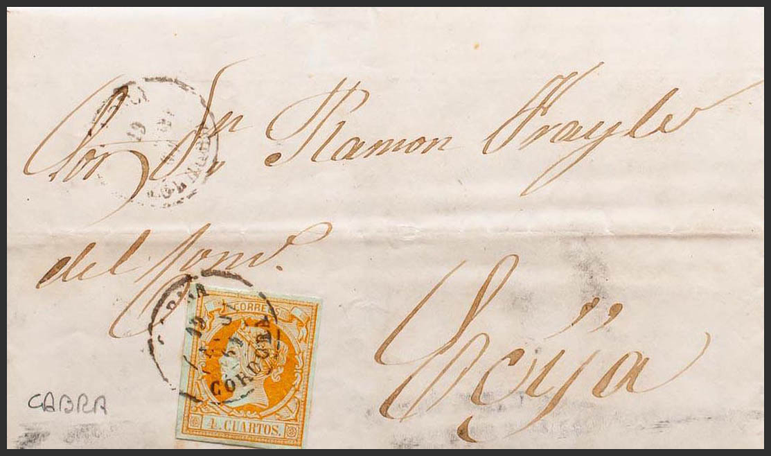52. 1861. 4 orange cuartos . GOAT to ECIJA. CABRA / CORDOBA postmark. MAGNIFICENT AND RARE.