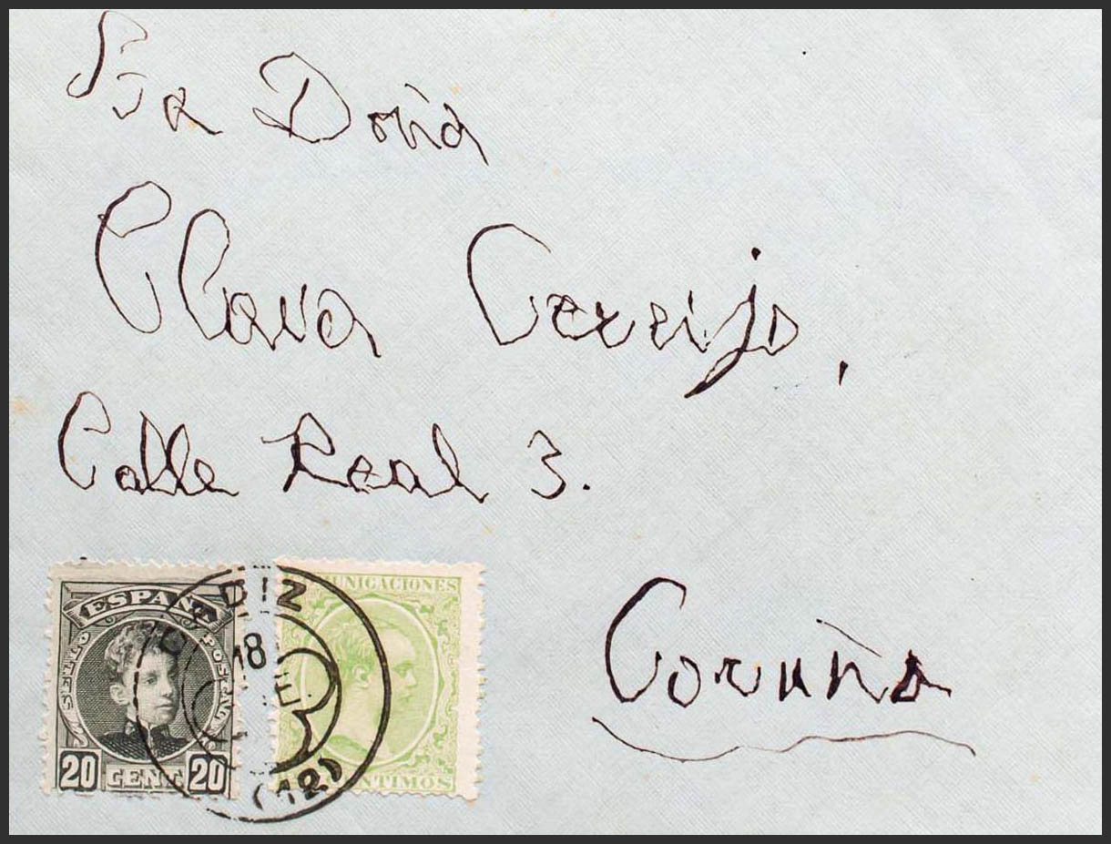 Andalusia. Postal History. Clover CADIZ / (12), arrival on the back. MAGNIFICENT AND RARE MIXED PELON-CADETE POSTAGE.