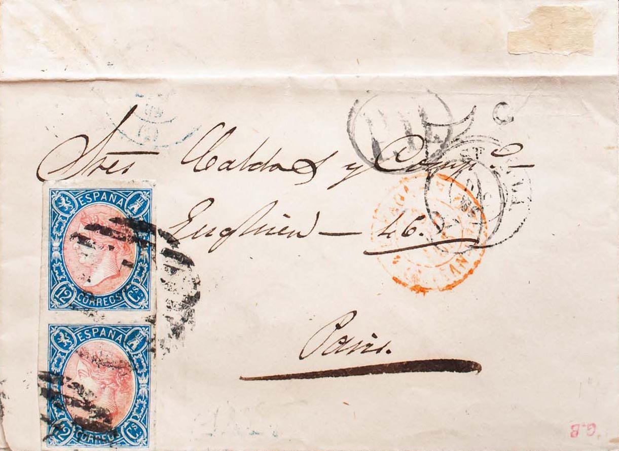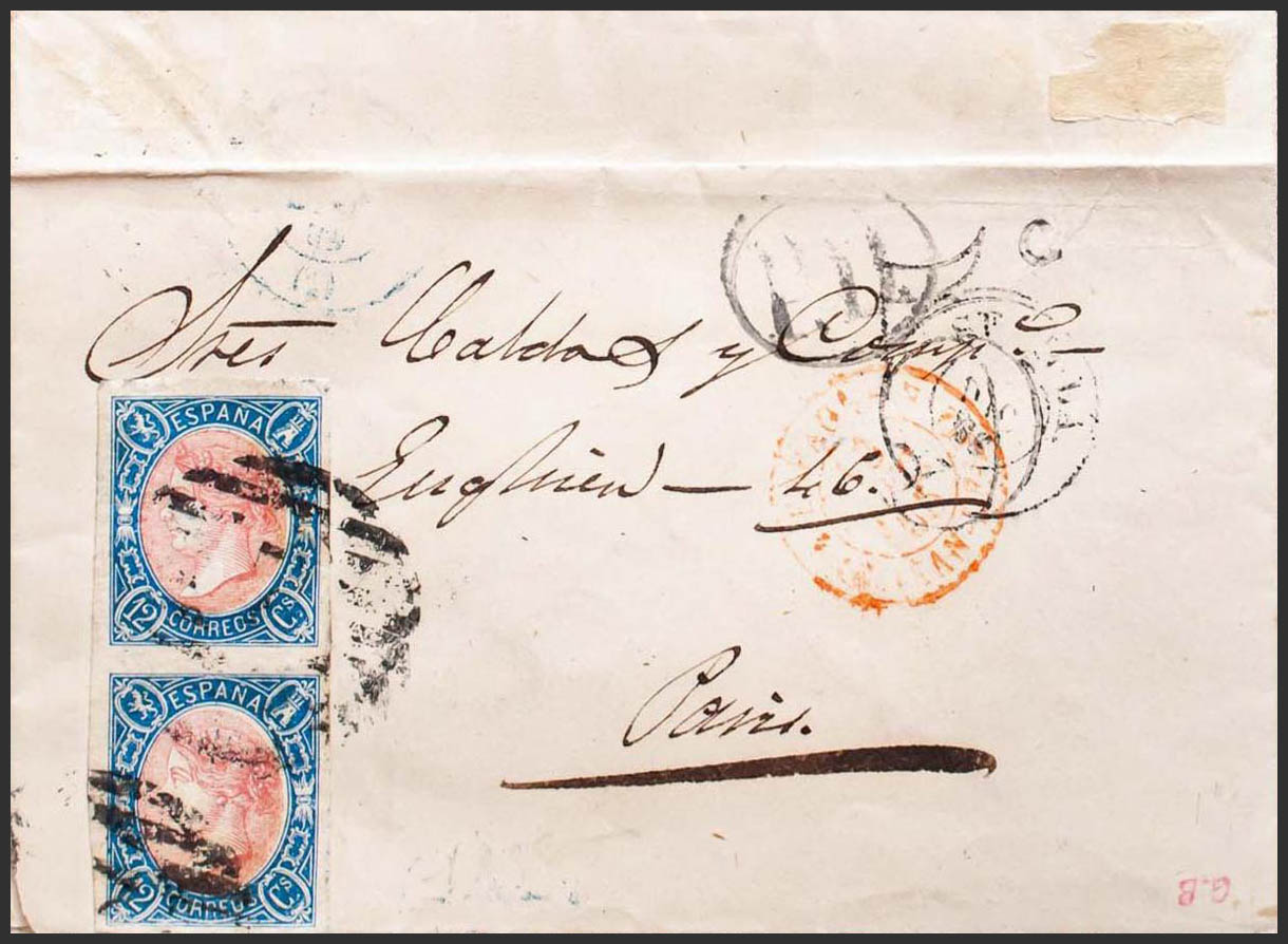 Andalusia. Postal History. GRILL WITH Nº7, from Sevilla, double size. MAGNIFICENT.