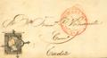 |ABOUT| 1. 1850. 6 black quarters, leaf edge. ANTEQUERA to CADIZ. MAGNIFICENT.