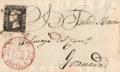 |ABOUT| 1A. 1850. 6 black quarters. Front from EL CARPIO (CORDOBA) to GRANADA. On the front Baeza CARPIO / ANDAL.A. MAGNIFICENT AND RARE.