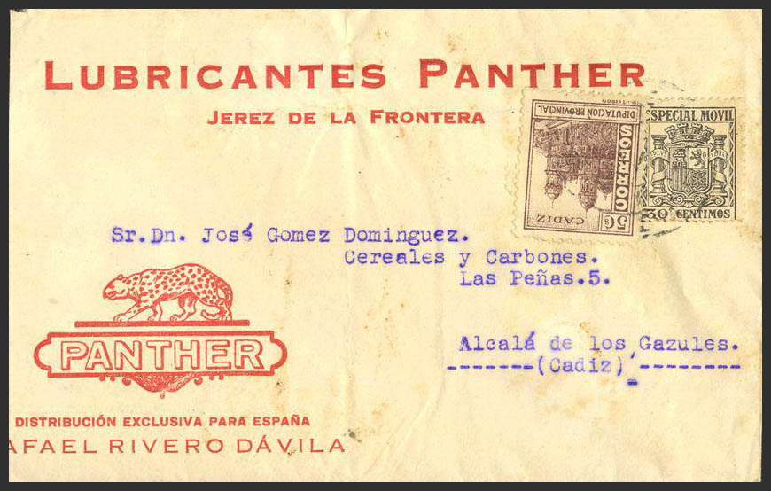 Phys 54. (1936ca). 30 cts black MOBILE. JEREZ DE LA FRONTERA to ALCALA DE LOS GAZULES. MAGNIFICENT.