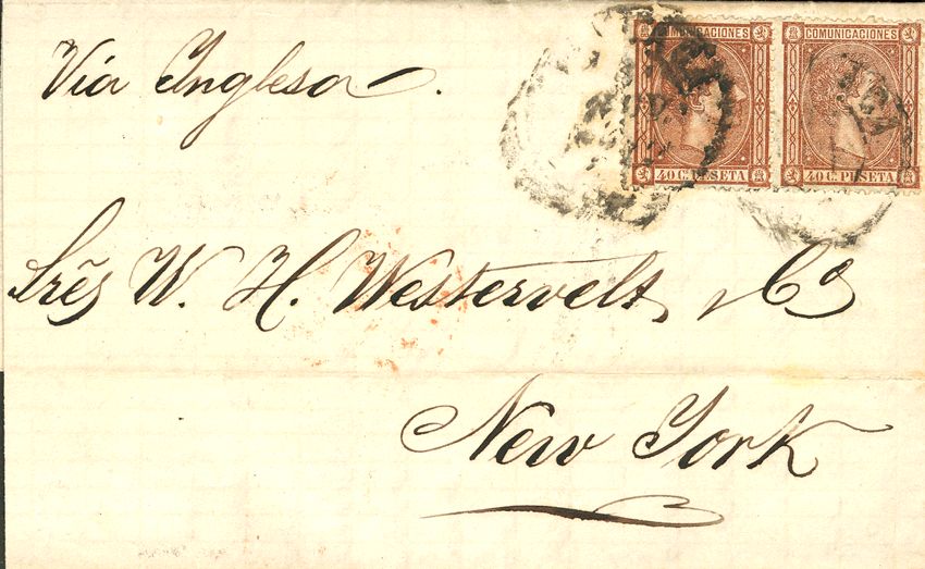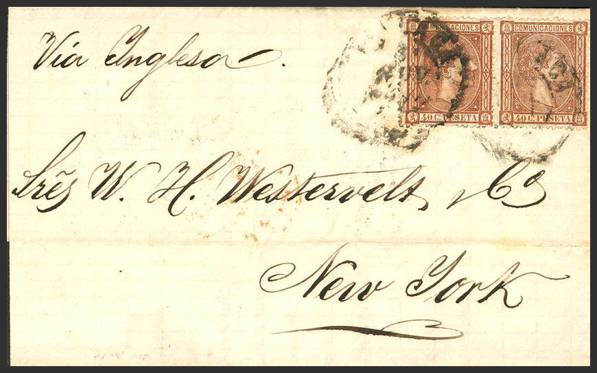 167(2). 1875. 40 chestnut cts, pair. MALAGA to NEW YORK. MAGNIFICENT AND RARE.