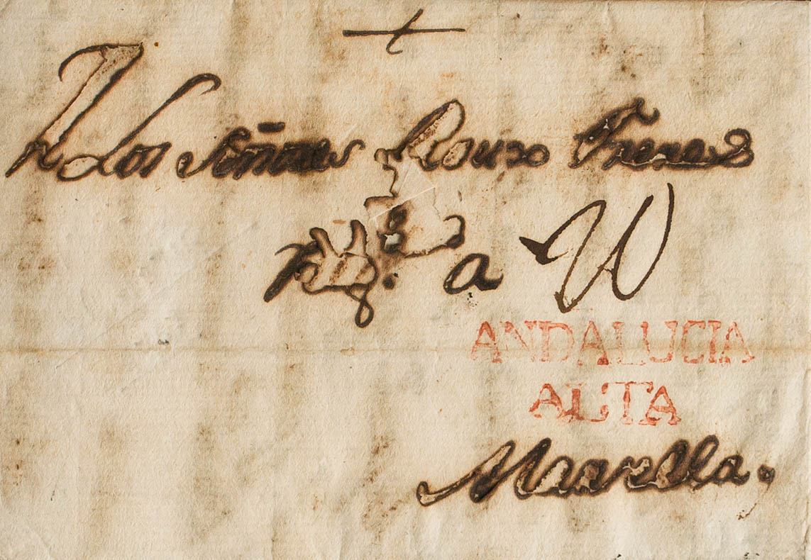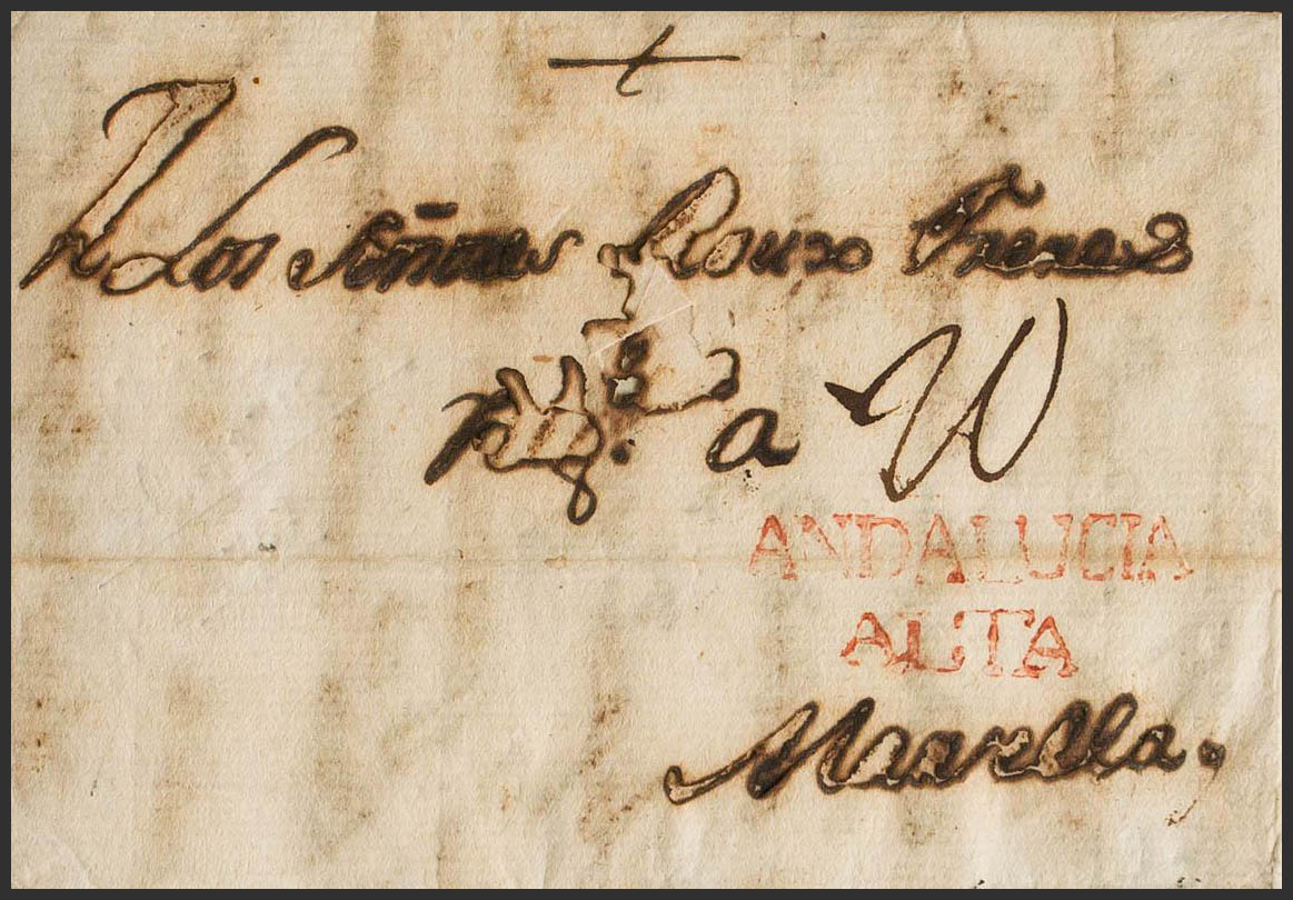 1767. ALMERIA to MARSEILLE (FRANCE) (rusty ink). ANDALUCIA / ALTA brand, in red (PE3) 2004 edition. MAGNIFICENT.