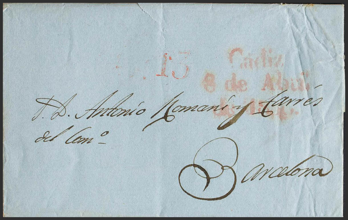 1836. CADIZ to BARCELONA. Brand CADIZ / APRIL 8 / DE 1836 (PE20) 2004 edition. MAGNIFICENT.