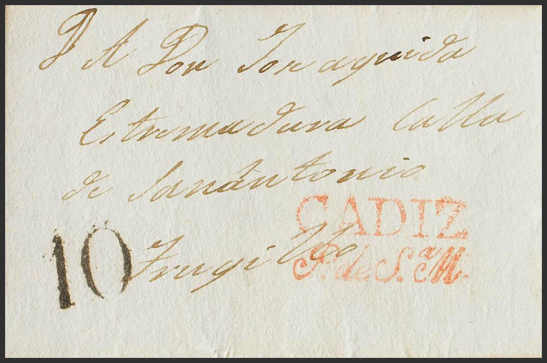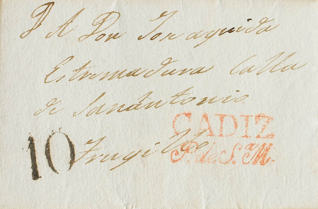 1841. PORT OF SANTA MARIA to TRUJILLO. Brand CADIZ / P. DE Sª. M. (PE6) 2004 edition. MAGNIFICENT PRINTING.