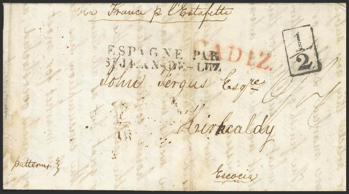 1830. CADIZ to HIRKALDI (SCOTLAND). CADIZ brand (PE17) 2004 edition. MAGNIFICENT AND UNUSUAL DESTINATION.