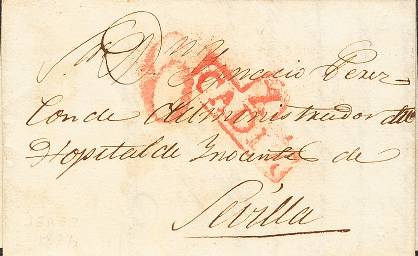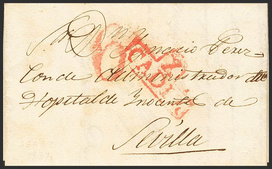 1837. JEREZ DE LA FRONTERA to SEVILLE. Marca X / CADIZ (PE2) 2004 edition. MAGNIFICENT.