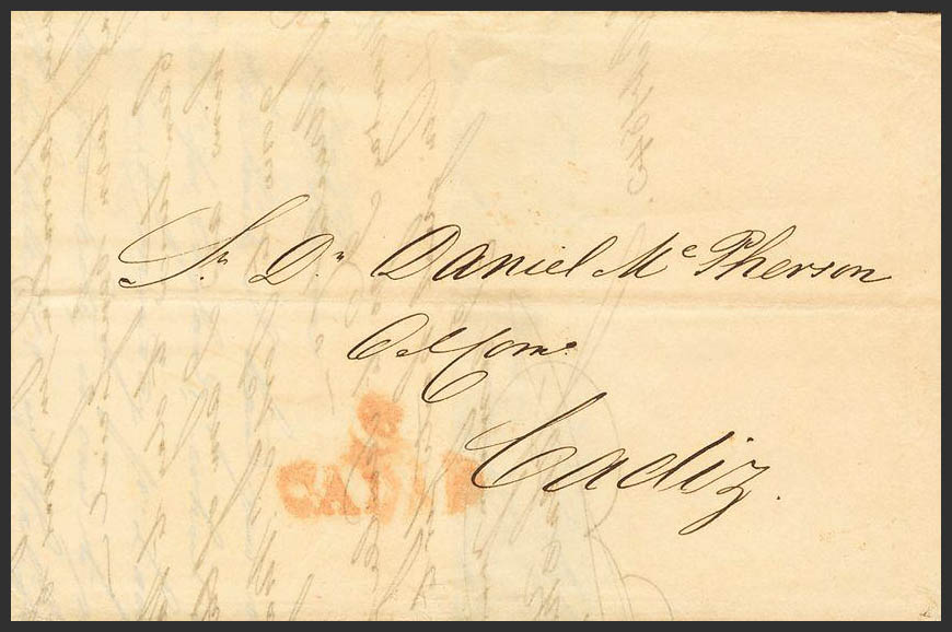 English 1843. SANLUCAR DE BARRAMEDA to CADIZ. Brand S / CADIZ (PE3) edition 2004. MAGNIFICENT.
