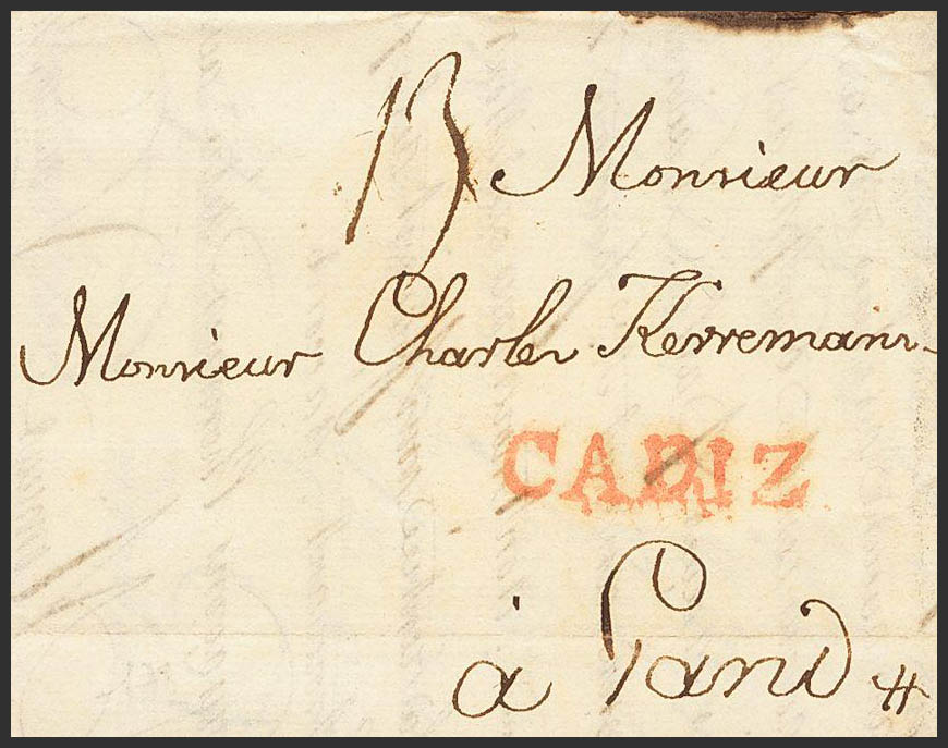 1783. CADIZ to GHENT (BELGIUM). CADIZ brand (PE13) 2004 edition. MAGNIFICENT.