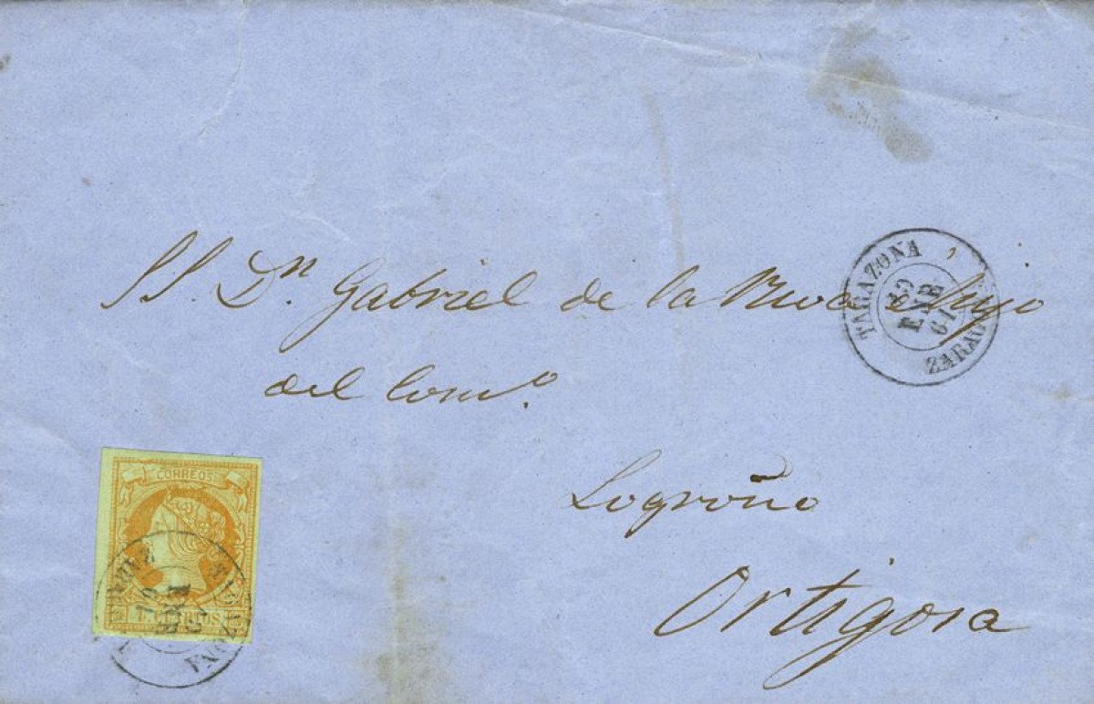 52. 1860. 4 cuartos yellow. TARAZONA to ORTIGOSA. Postmark TARAZONA / ZARAGOZA. PRETTY