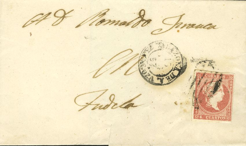 48. 1857. 4 red cuartos . TARAZONA to TUDELA. Postmark GRILL, next to TARAZONA DE A. / ZARAGOZA (Type I).