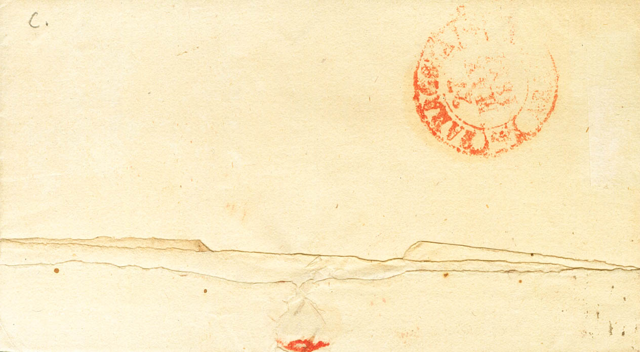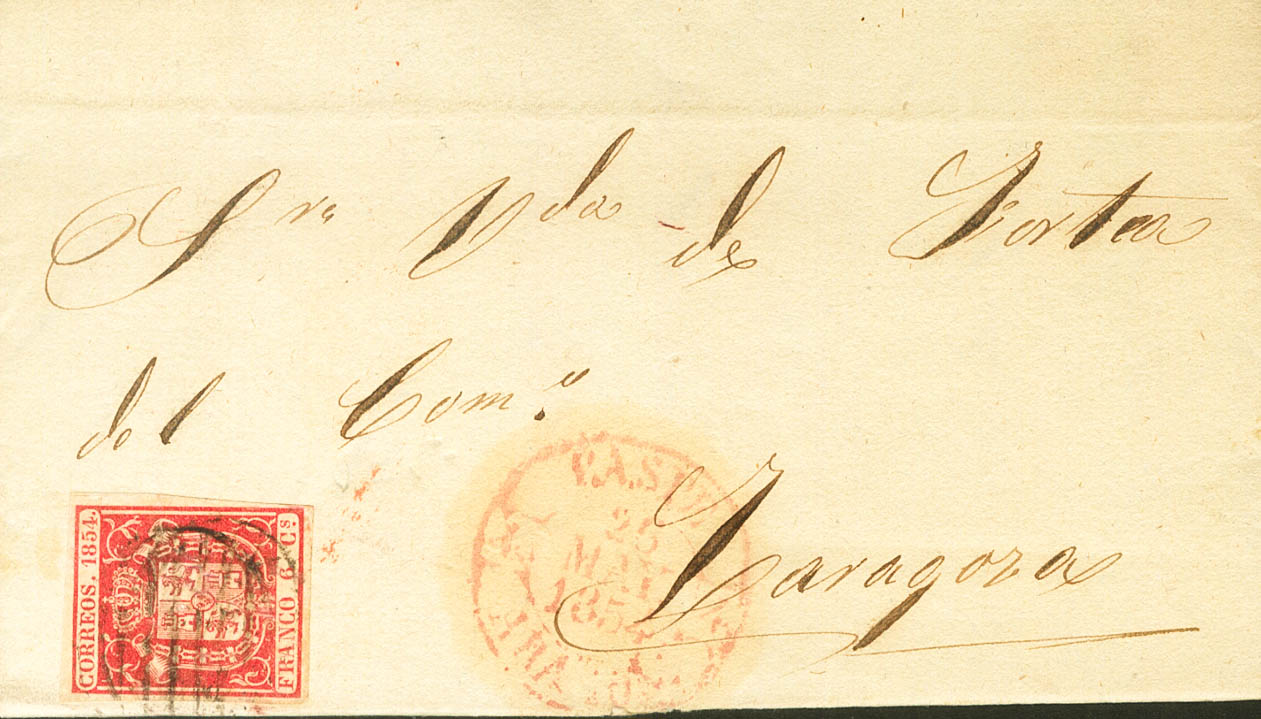 |ABOUT| 24. 1854. 6 carmine quarters. CASPE to ZARAGOZA. On the Baeza CASPE / ARAGON front, in red. MAGNIFICENT.