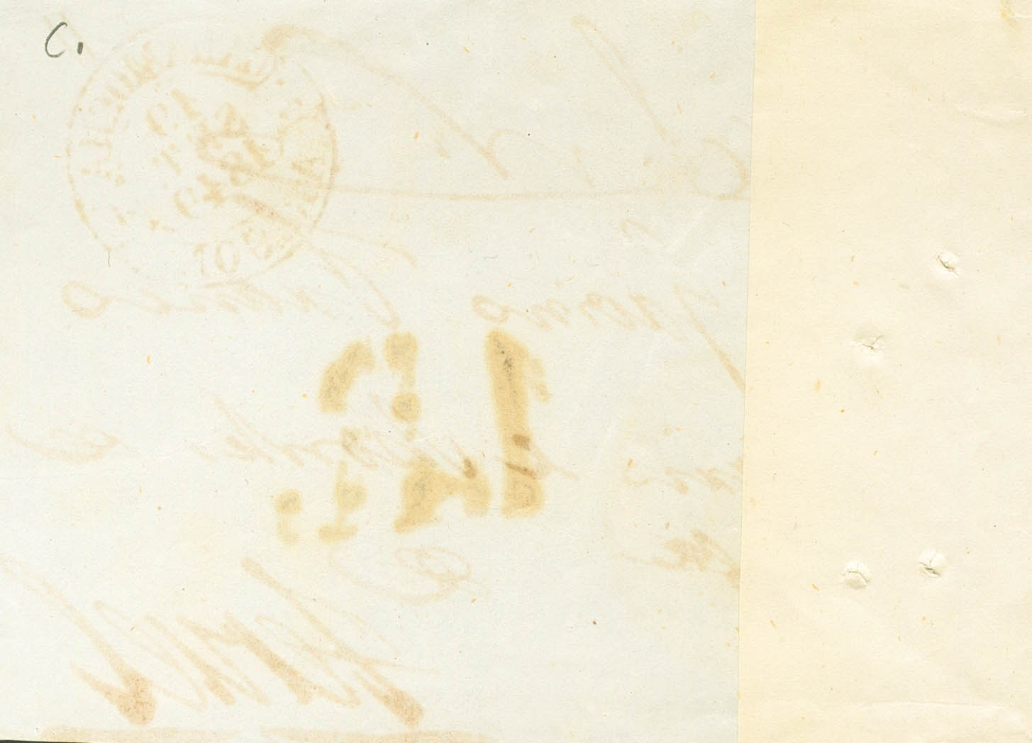 English |ABOUT|1849. Front from CALAMOCHA (TERUEL) to TERUEL. Baeza CALAMOCHA / ARAGON, in red. MAGNIFICENT.