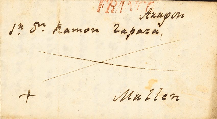1839. ZARAGOZA to MALLEN. FRANCO brand, in red (PE29) 2004 edition. MAGNIFICENT AND RARE.