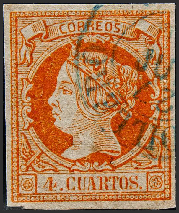 Asturias. Philately. CUDILLERO / OVIEDO (Type I), in blue. MAGNIFICENT.