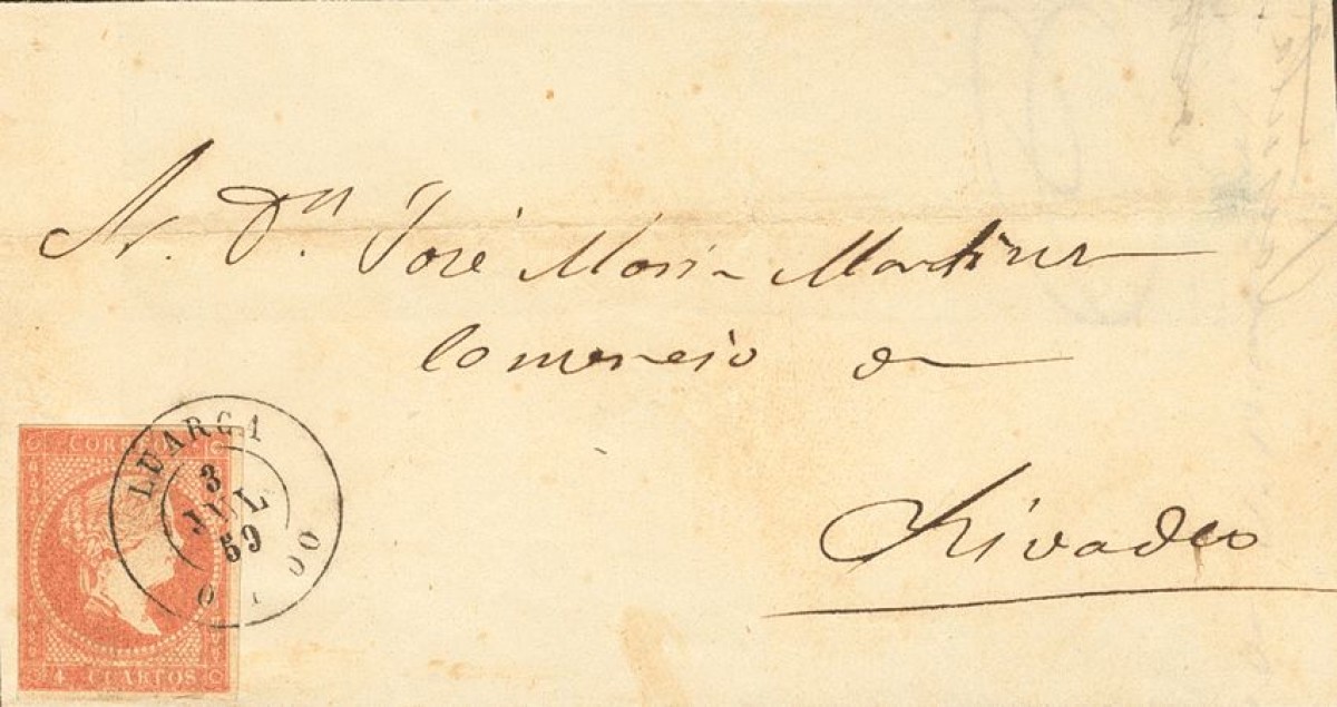 48. 1856. 4 red cuartos . LUARCA to RIVADEO. Postmark LUARCA / OVIEDO. MAGNIFICENT.