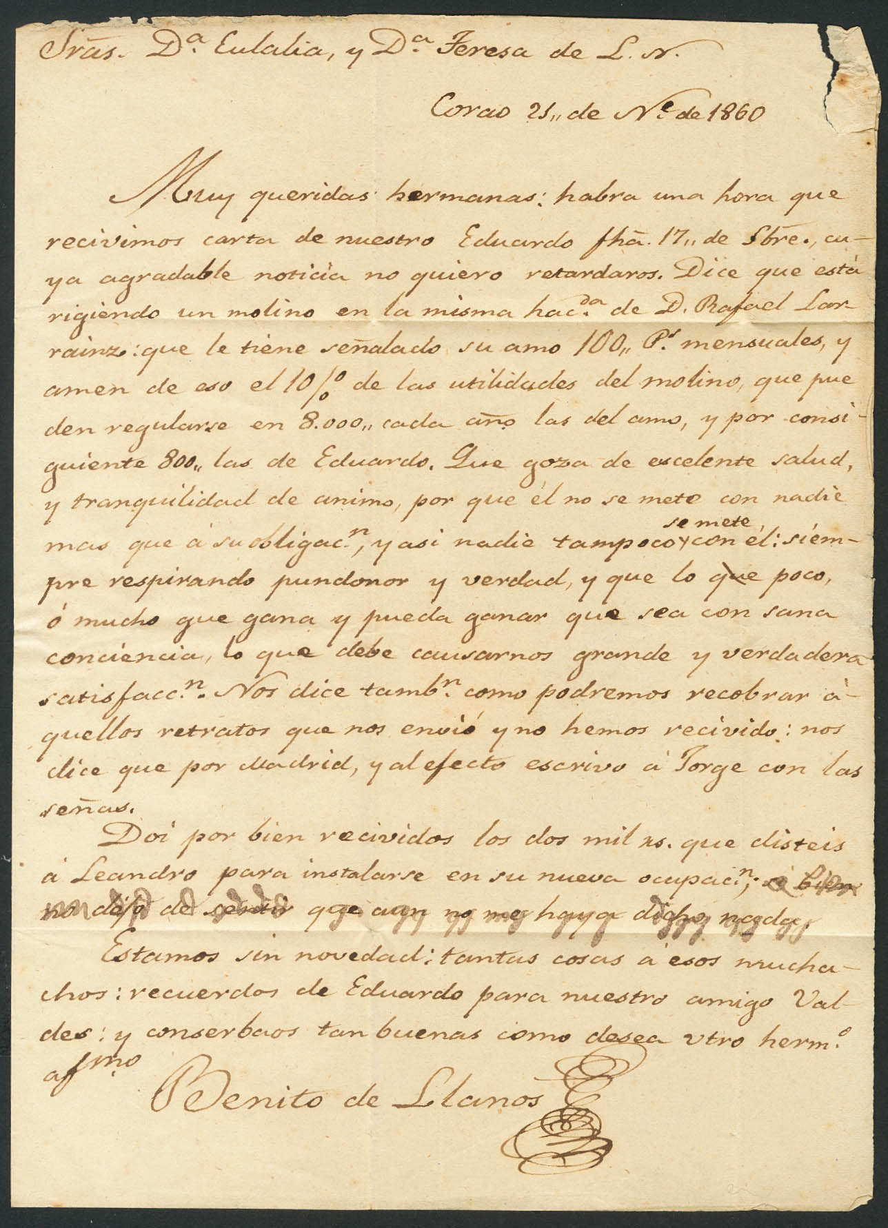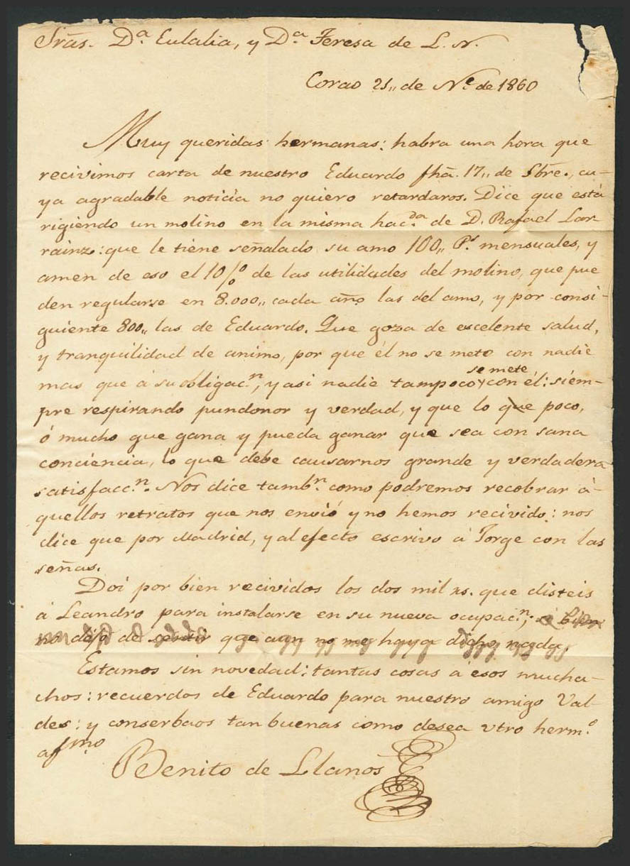 English 52. 1860. 4 cuartos yellow. CANGAS DE ONIS to GIJON. Postmark CANGAS DE ONIS / OVIEDO. MAGNIFICENT.