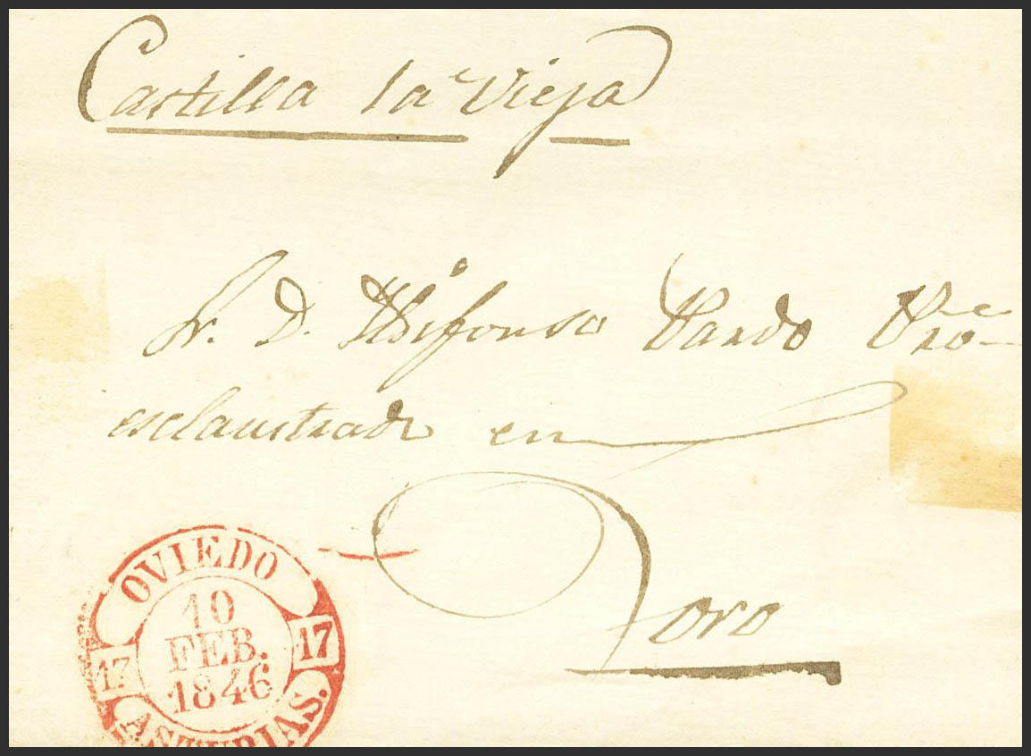 1946. OVIEDO to TORO. Baeza OVIEDO / ASTURIAS, in red. MAGNIFICENT PRINT.