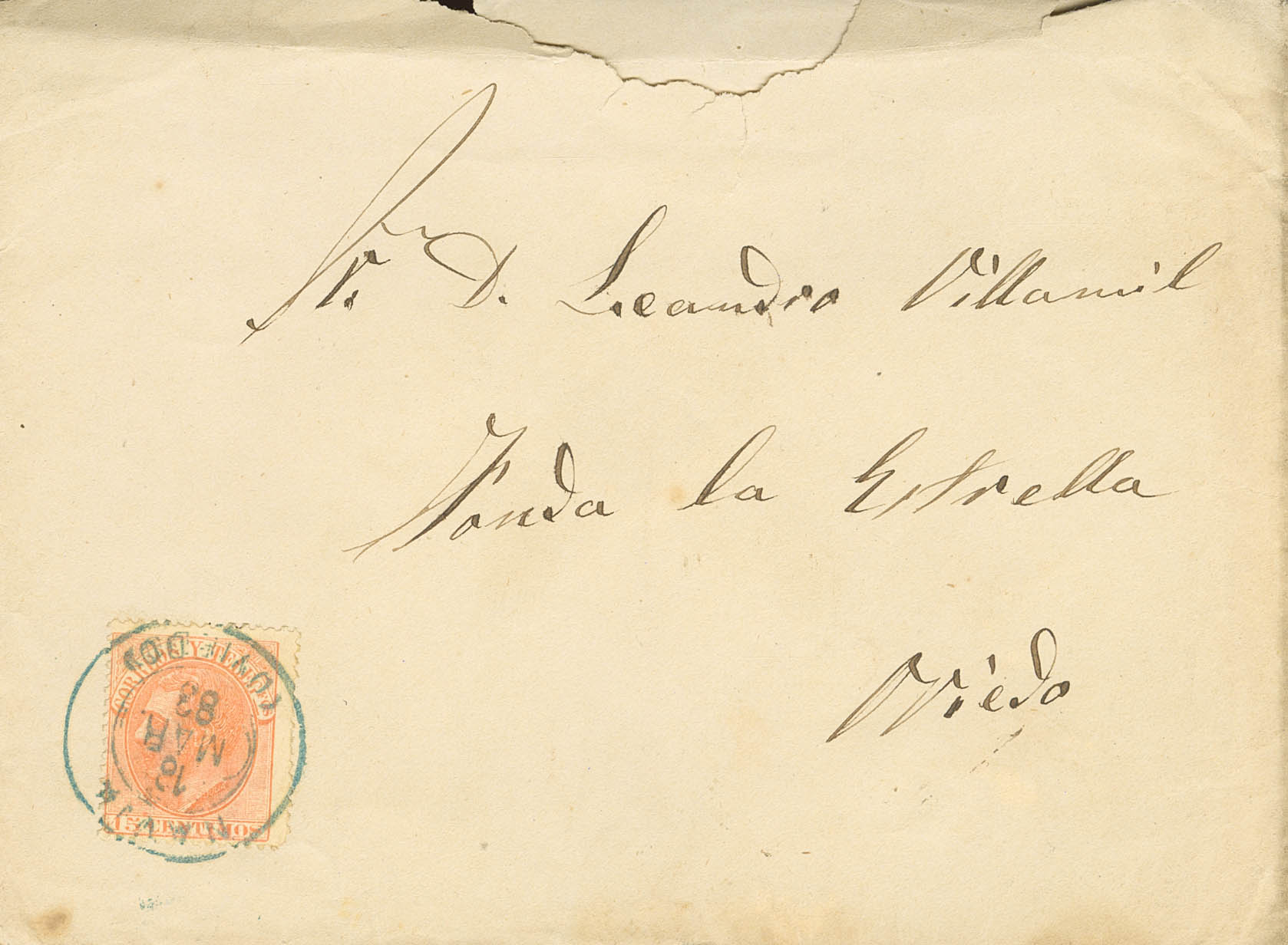 Asturias. Postal History. NAVIA / (OVIEDO), in blue. MAGNIFICENT.